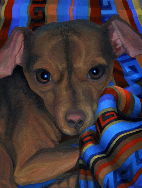 This is a second attempt at my first commissioned pet portrait. I'm still not satisfied with the results. The reference photos make this a particularly difficult and fascinating challenge. It required some reconstruction of the subject matter, where details in the original photo are obscure, and a reinterpretation of lighting conditions and color. The aptly-named Cutie deserved the effort.